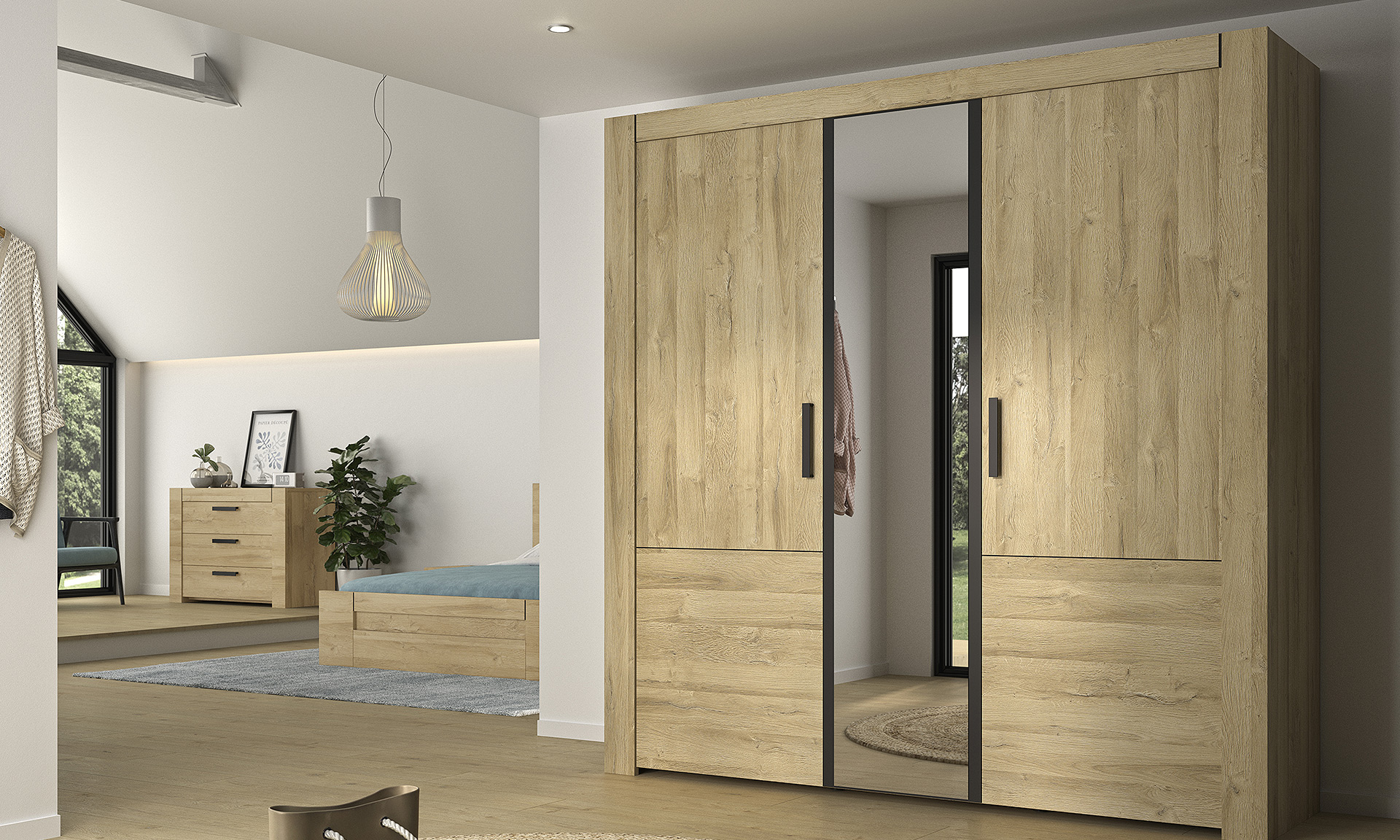 - Armoire 3 portes dont 1 porte miroir L.223 H.222 P.58 cm