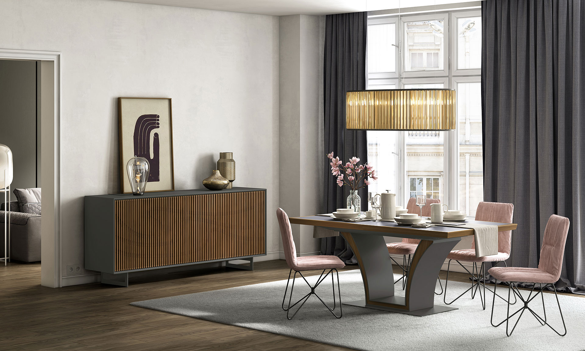 Panneaux laqués MDF standard, aggloméré et chêne, frêne ou noyer massif. Éclairage LED avec sensor (réglage intensité) en option. Tiroir intérieur en option.
